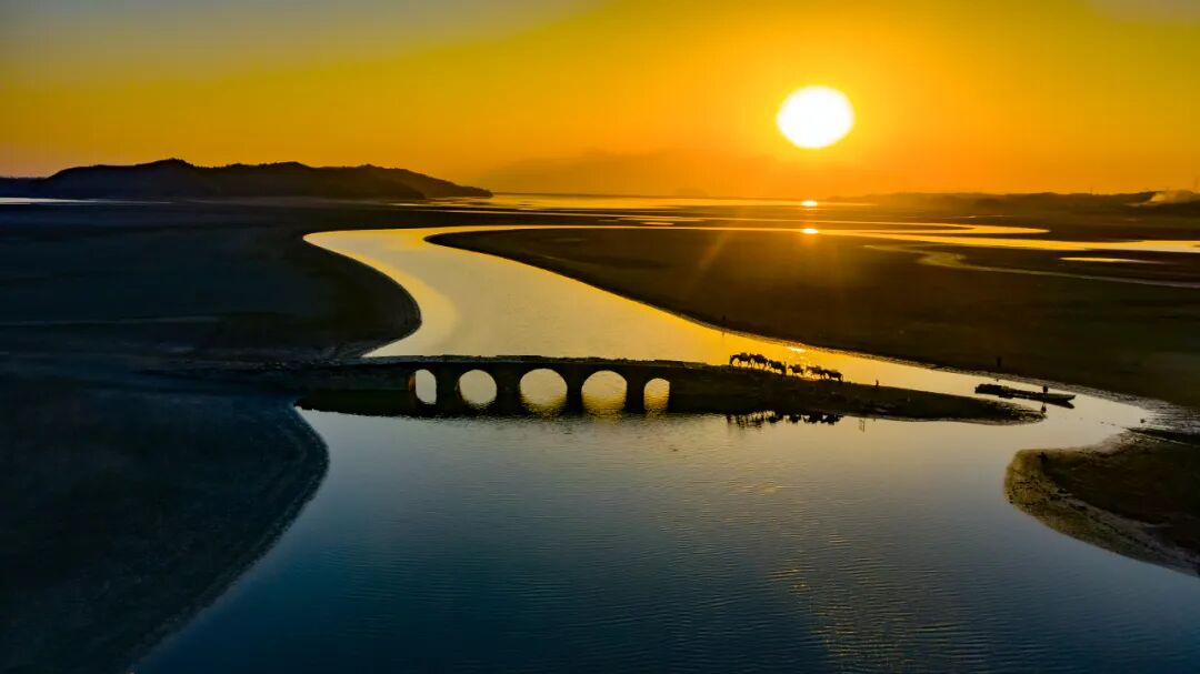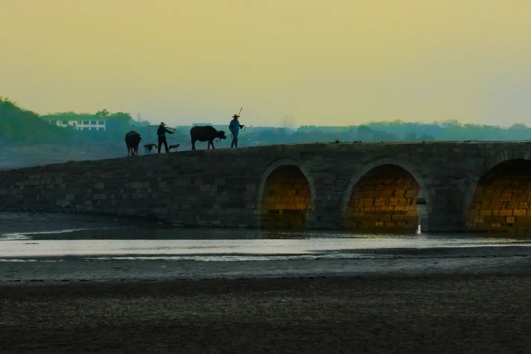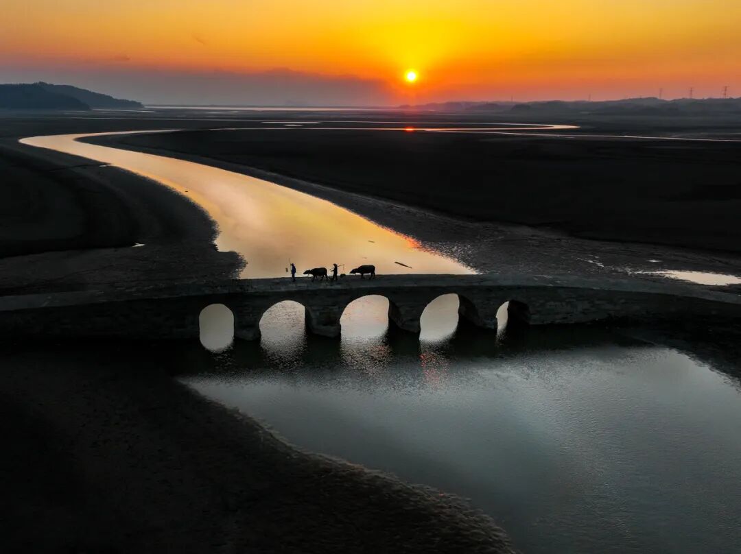這座橋建于明代,豐水期隱于湖水,枯水期才會露出,是曾經人們往來的交通要道,如今成為人們冬季旅游的“網紅”打卡地。