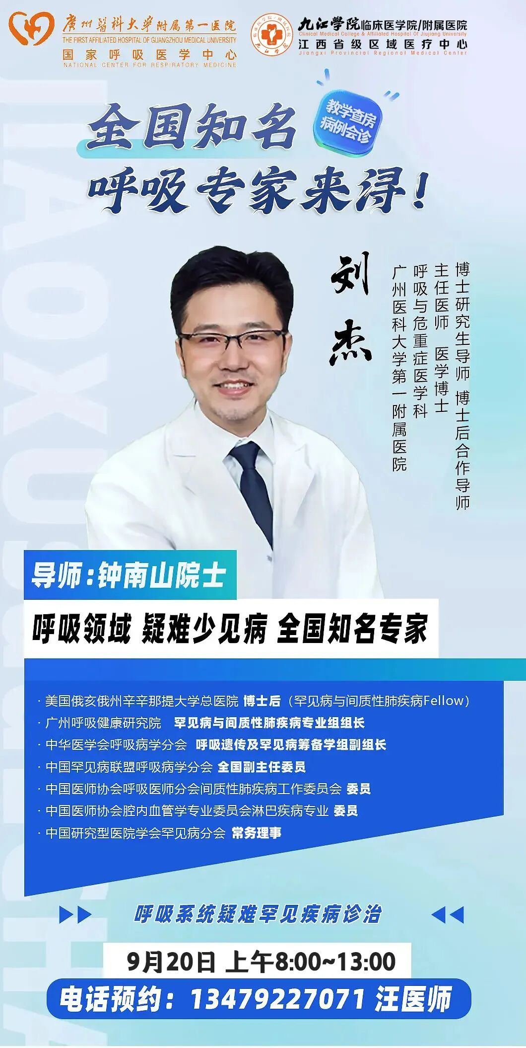醫訊|9月20日 全國知名呼吸專家廣州醫科大學第一附屬醫院劉杰博士來潯