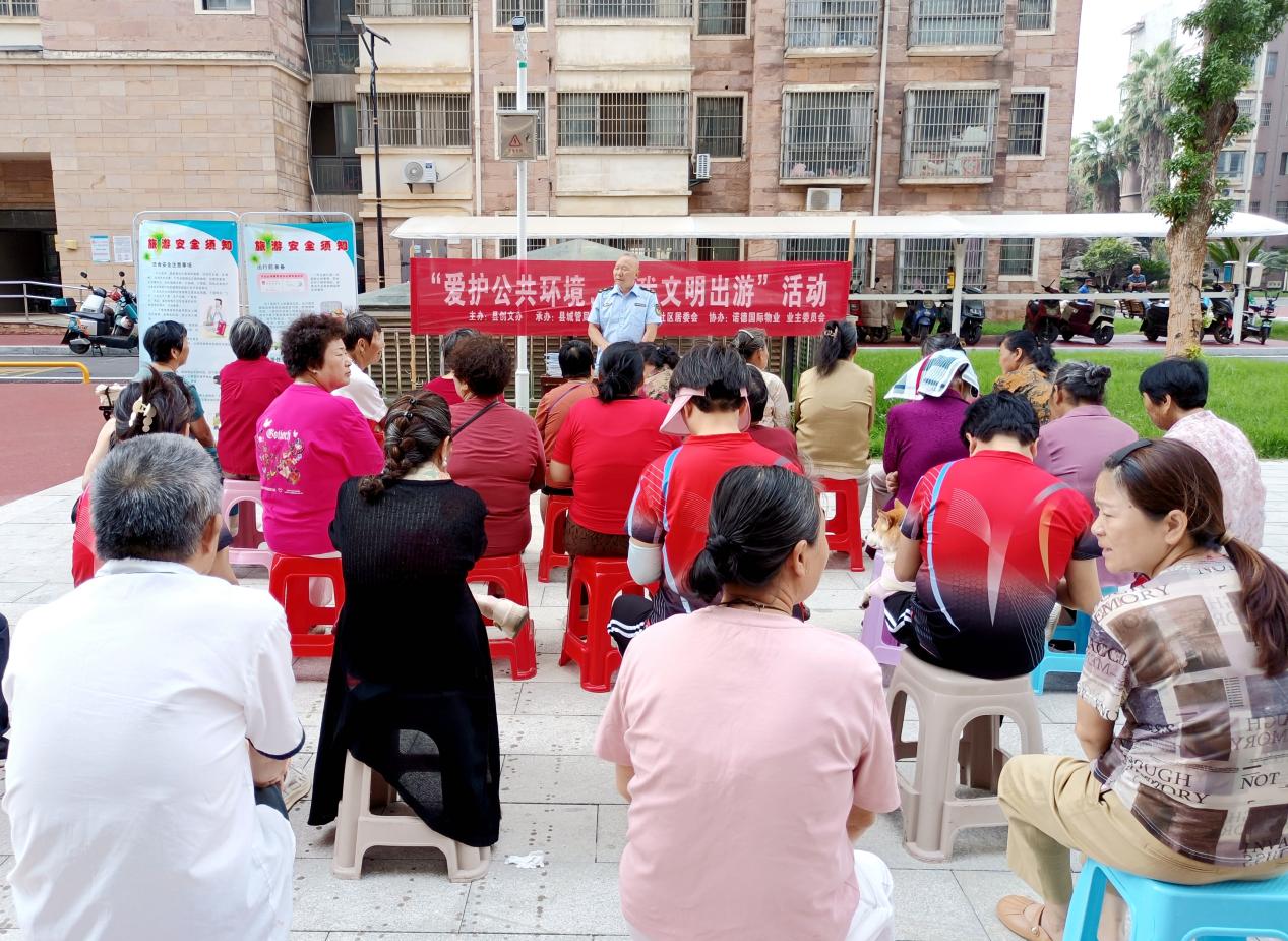 九江新聞網訊(楊長興 鄭文斌)為規(guī)范旅游市場秩序,增強市民文明旅游意識,9月19日,永修縣創(chuàng)文辦、縣城管局、縣文廣旅局聯合該縣諾德國際物業(yè)及業(yè)主委員會,走進諾德國際小區(qū)廣場,開展“愛護公共環(huán)境,你我文明出游”主題宣傳活動,將文旅市場監(jiān)管服務延伸至群眾“家門口”,用“接地氣”的方式,織密導游亂象“防護網”。