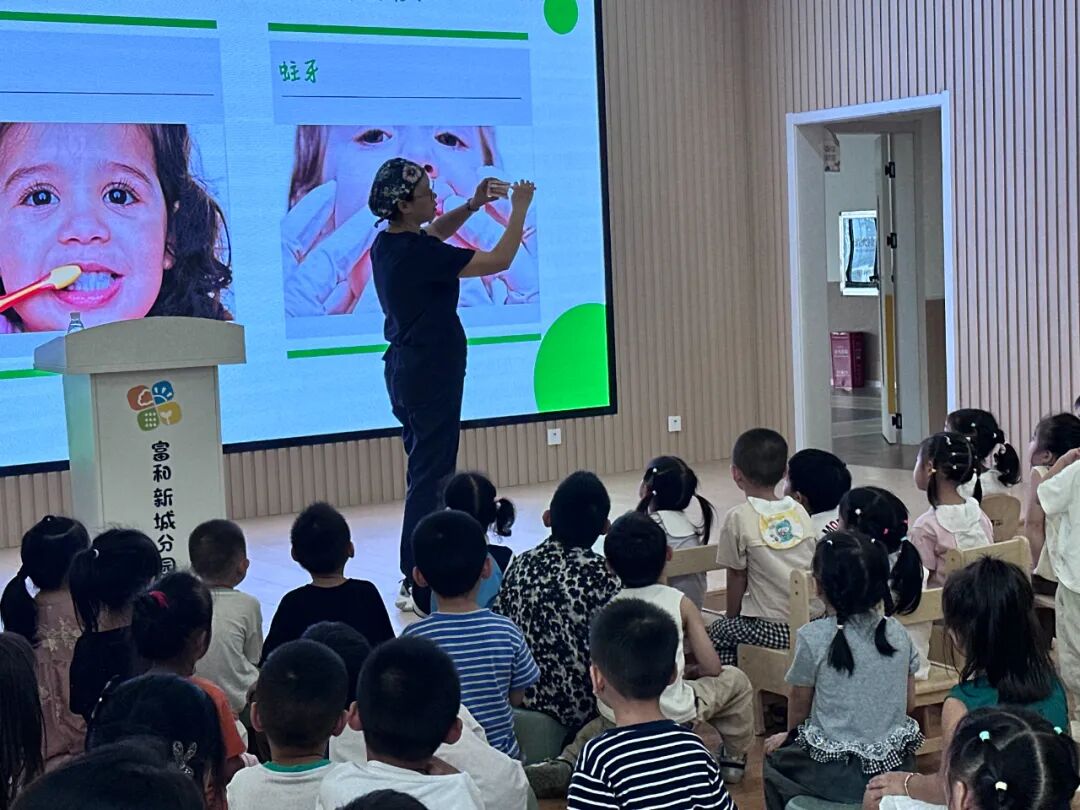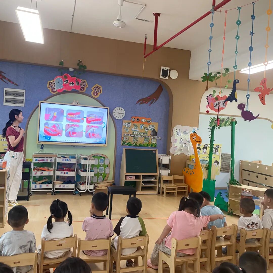 醫生根據幼兒年齡特點,通過圖片、視頻等形式向孩子們詳細講解了牙齒的結構、作用,介紹了愛護牙齒的重要性以及保護牙齒的方法,引導孩子們學會如何清潔口腔,掌握刷牙的方法,也幫助孩子們養成良好的生活衛生習慣。