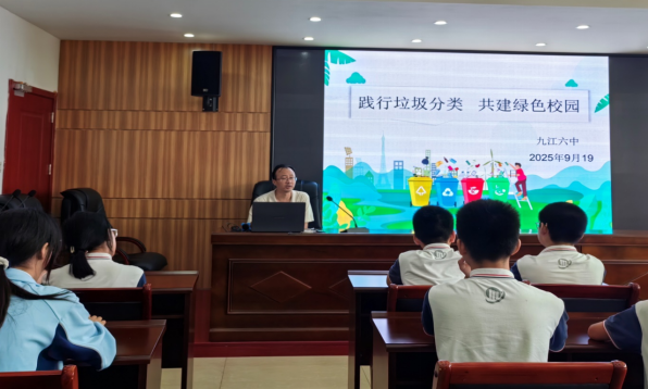 九江新聞網(wǎng)訊(李悅)為增強(qiáng)學(xué)生環(huán)保意識(shí),推動(dòng)綠色校園建設(shè),9月19日,九江六中舉辦“踐行垃圾分類,共建綠色校園”主題講座。本次講座由學(xué)校體藝中心主任舒小軍主講。
