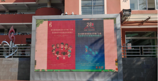 校園環境布置也成為推普宣傳的重要陣地。電子顯示屏滾動播放推廣普通話宣傳標語,醒目而富有感染力,時刻提醒師生規范使用語言文字。