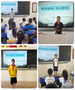 學校五、六年級學生通過經典誦讀比賽,將課堂教學、課外活動與經典閱讀有機融合,豐富閱讀內容,培養學生“愛讀書、讀好書、善讀書”的良好習慣。一組組經典詩文在孩子們的深情誦讀中不絕于耳,一個個經典誦讀節目在孩子們的精彩演繹下熠熠生輝!同學們在推普周經典誦讀活動中,用標準動聽的普通話,共同感受語言文字的魅力,傳遞少年們的強音。