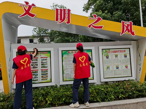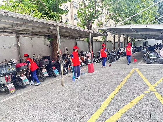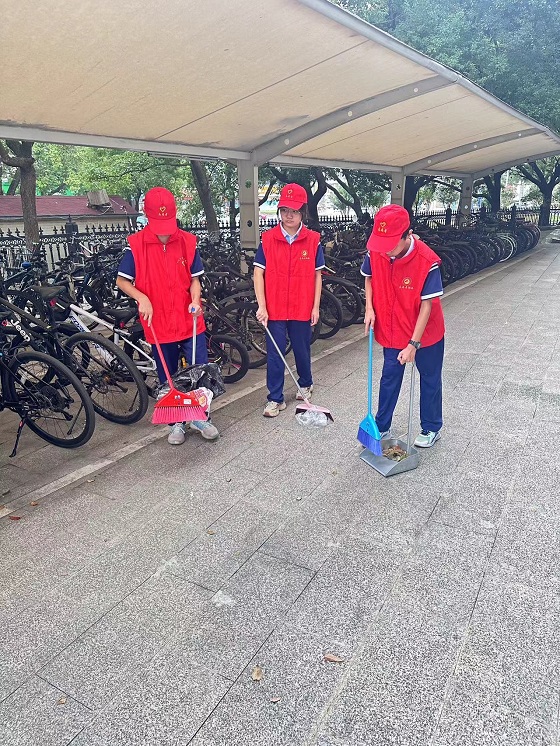 活動當天,同學們熱情洋溢,分工協作。在自行車棚,大家不怕臟、不怕累,細心地將自行車擺放整齊,并徹底清掃了角落里的落葉和垃圾,讓停車區域煥然一新。隨后,同學們又化身“清潔小衛士”,手拿抹布,認真擦拭著校園里的每一塊宣傳展牌和標識。經過大家的共同努力,原本蒙塵的展牌重現光彩,校園環境變得更加整潔靚麗。