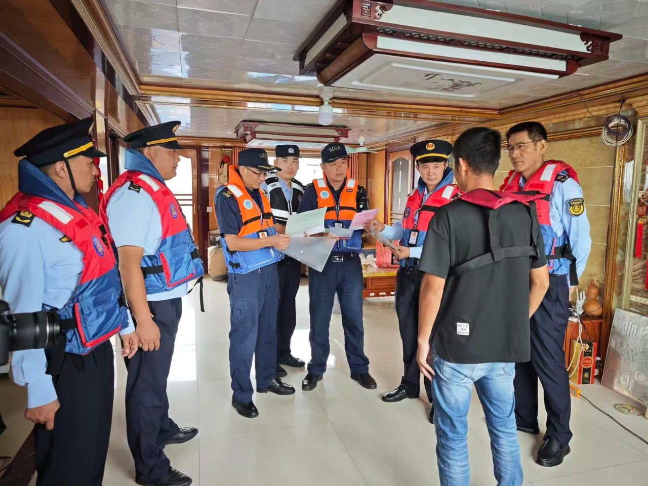 湖口海事處執(zhí)法人員與聯(lián)合巡查組乘艇共同對(duì)轄區(qū)張北水道、八里江水域開(kāi)展現(xiàn)場(chǎng)巡航巡查,重點(diǎn)打擊非法捕撈、整治違規(guī)垂釣行為。聯(lián)合執(zhí)法人員共同對(duì)船舶開(kāi)展登輪檢查,對(duì)是否存在投放網(wǎng)具和使用違規(guī)魚(yú)竿垂釣的行為進(jìn)行仔細(xì)清查,并提醒船方,嚴(yán)禁一人多竿多鉤、使用活餌垂釣、錨魚(yú)、生產(chǎn)性垂釣等違法違規(guī)行為。