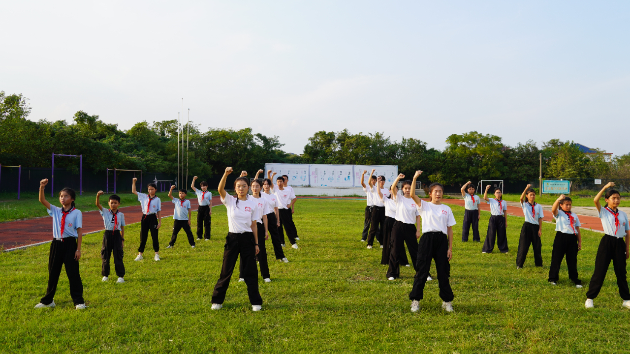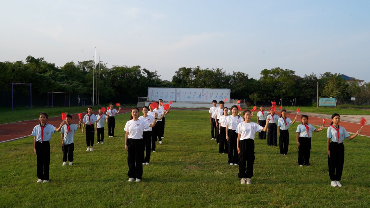 活動(dòng)在激昂的歌聲中拉開帷幕,陽光下,學(xué)生們精神抖擻,老師們熱情洋溢,師生并肩而立,隨著音樂的節(jié)奏揮動(dòng)手臂、踏步轉(zhuǎn)身。歡快的旋律中,紅色的旗幟與飄揚(yáng)的紅領(lǐng)巾交相輝映,整個(gè)校園匯成一片充滿活力與熱情的海洋。