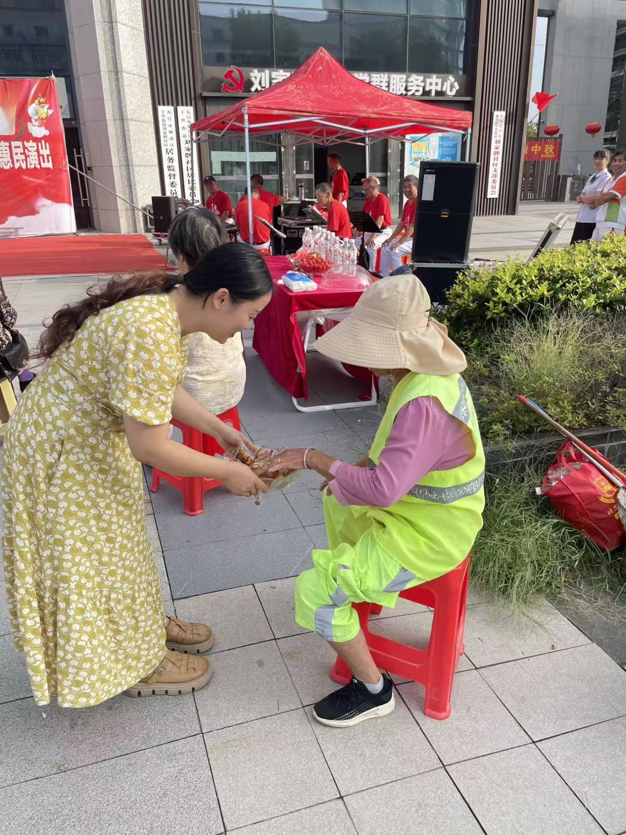 演出間隙,社區工作人員還為現場的居民、路過的道路清潔工送上了月餅和節日祝福,讓他們在歡聲笑語中感受到社區大家庭的溫暖。“這樣的演出既好看又貼心,不僅看到了精彩的節目,還收到了節日禮物,心里特別高興!”社區居民徐阿姨笑著說。