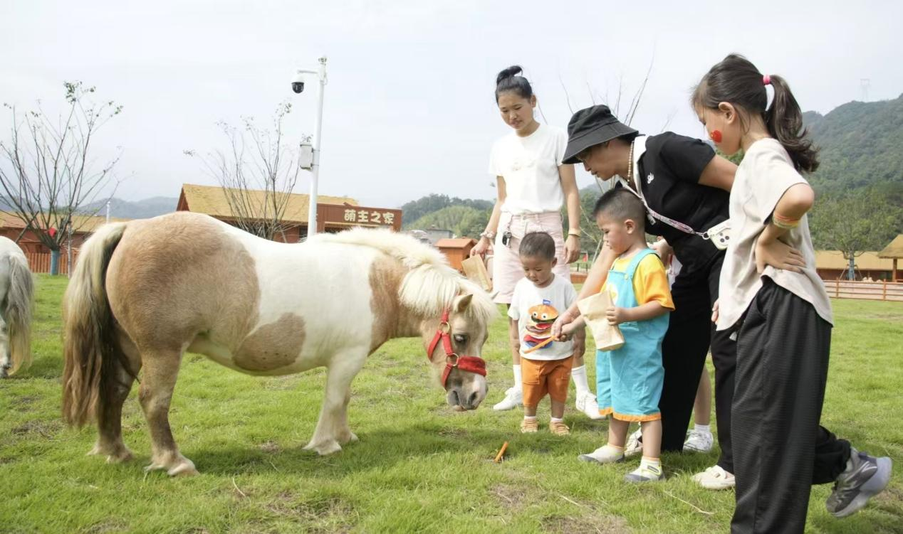 “表白我的國”群島快閃在主景區湖島間熱情上演,游客們在山水之間表達對祖國的深情祝福。新開業的嗨橘派樂園內,梅花鹿、羊駝、矮腳馬與大小朋友們親昵互動,卡丁車在賽場上暢快飛馳,柑橘集市熱鬧非凡,人們在橘色的海洋中流連忘返。