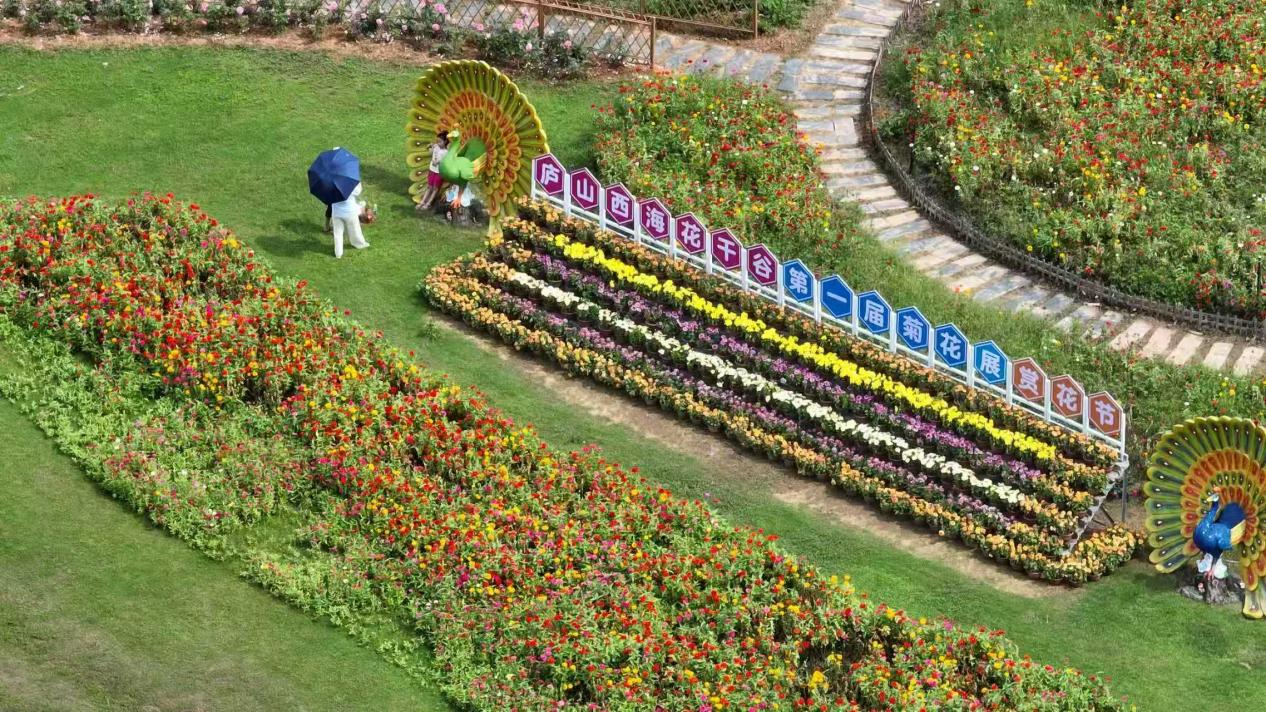 吳王谷景區內,山谷之幽與清茗之雅相得益彰,游客們在行酒臺免費品茶,在靈泉瀑布集郵打卡,讓這片天然秘境更添人文意趣。花溪水街流水潺潺,迷霧森林綠意盎然,讓人仿佛走進現實版的綠野仙蹤,為西海大峽谷更添一份動靜相宜的絕美意境。而與之遙相呼應的花千谷,此刻正上演著一場秋日的視覺盛宴。百畝菊花盛情綻放,宛如一塊塊天然調色盤從山腳鋪陳開來,游客們俏立花田打卡拍照,醞釀出這個季節最獨特的記憶。