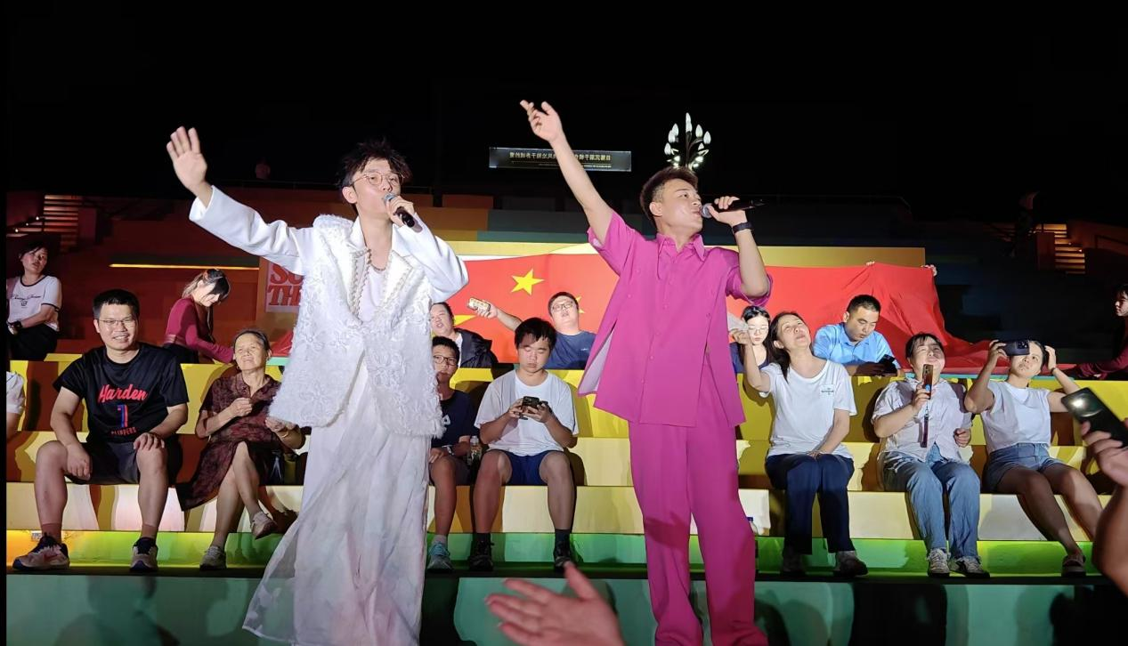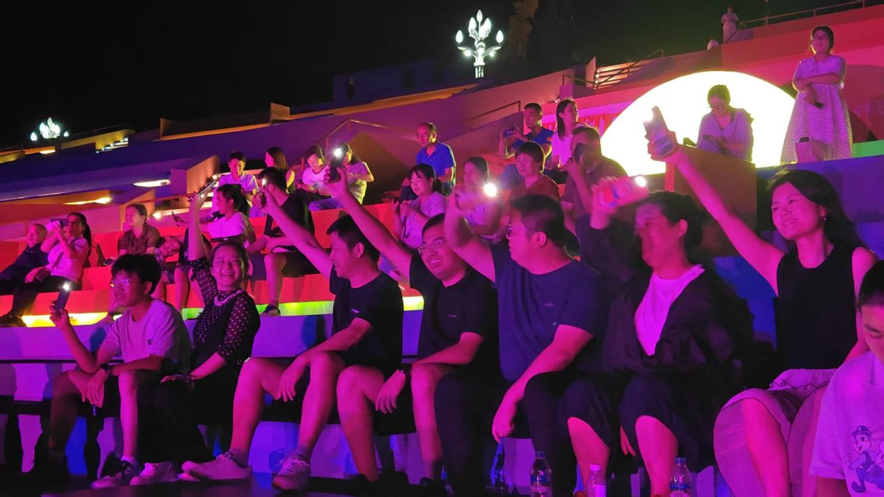 暮光集市的“國潮腔調”音樂會更是吸引了大量游客駐足欣賞。小提琴演奏抒情纏綿、歌曲聲入人心、舞姿優美動人、互動趣味十足,從暮色四合至月光朦朧,現場合唱聲、歡笑聲不絕于耳,手機閃光燈如螢火閃爍,全場化作一片律動的浪漫星河。