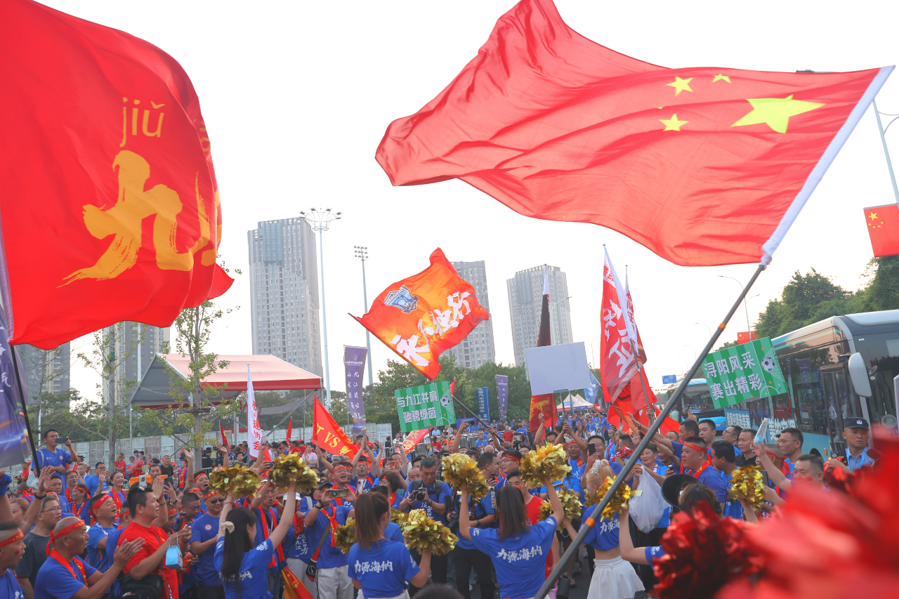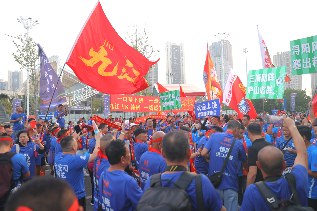 九江新聞網訊(九江日報全媒記者 張新紅/文 劉家/攝)誰能進決賽?這個縈繞在九江與贛州兩地球迷心中的懸念在10月11日晚揭曉——在萬千球迷的吶喊聲里,贛州隊昂然挺進決賽。是夜,南昌、贛州、九江、上饒、景德鎮、鷹潭3萬余名球迷化身藍紅色海洋,為球隊加油助威,共同見證這一激情時刻。