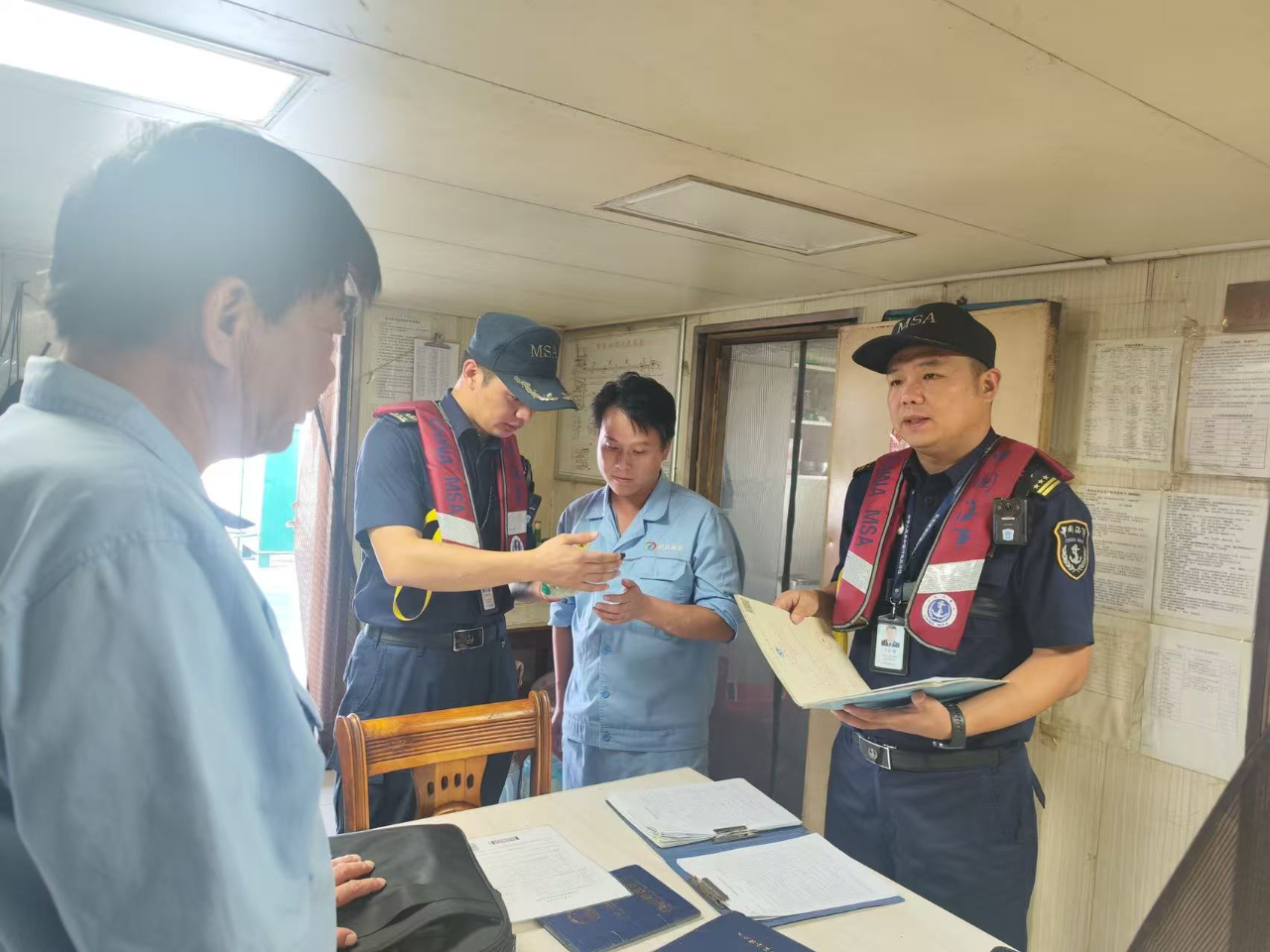 10月12日下午,執法人員乘“海巡12353”艇前往永和洲危貨錨地對“錦龍***”華通***輪開展登輪檢查。執法人員先是詳細檢查了船舶防靜電裝置、圍油欄、輸油管,仔細查看了消防設備、防火結構、貨艙區域、透氣系統、人員保護和應急預案,隨后重點對船舶進出港電子報告情況、船載危險品貨物申報情況、船員配備履職情況等進行核查。執法人員提醒船方:一是要提高安全責任意識,加強消防、救生、應急等關鍵設施設備維護保養,嚴防各類事故發生,加強現場的值班值守,確保作業安全;二是要嚴格按規定開展應急演練,確保應急響應迅速有效;三是近期仍處于高溫天氣,一定要嚴格落實高溫天氣作業規定,保證作業安全。