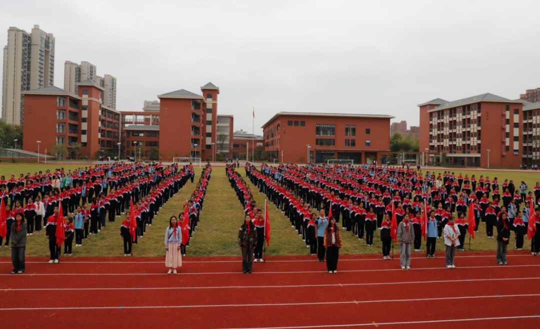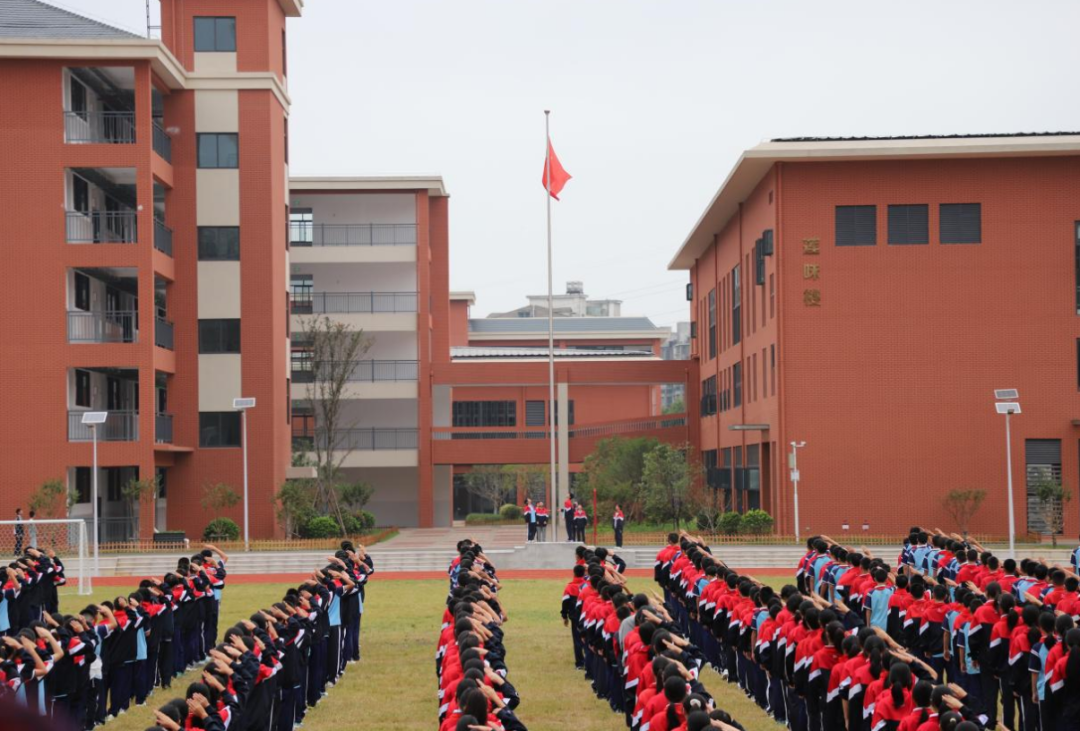 全體師生肅立注目,齊唱國歌,注視五星紅旗冉冉升起。隊員們神情莊重,滿懷期待,迎接屬于他們的光榮時刻。