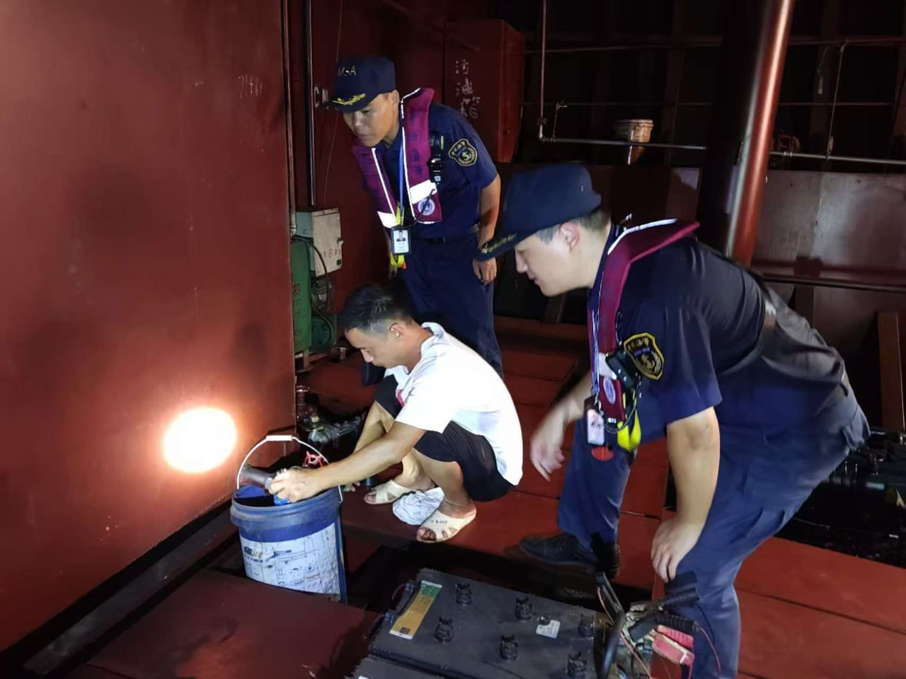 執(zhí)法人員乘海巡艇開展安全巡查,對抵港船舶“贛通XX”輪開展燃油質(zhì)量檢測。執(zhí)法人員首先向船方宣傳了相關(guān)法規(guī)和最新政策,要求船方做好船舶水污染物的接送處置。隨后,執(zhí)法人員認(rèn)真查看了船舶相關(guān)涉污記錄,并在輪機(jī)員的陪同下去機(jī)艙日用油柜抽取燃油,然后使用燃油快速檢測儀對燃油進(jìn)行質(zhì)量檢測, 并把檢測后的結(jié)果反饋至船方簽字確認(rèn)。檢查結(jié)束后,執(zhí)法人員提醒船長提高安全意識和防污染意識,落實好惡劣天氣條件下的船舶安全措施。
