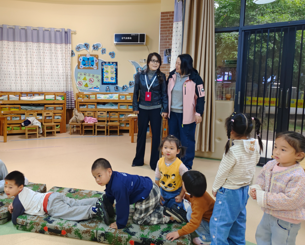 在園班子成員的陪同下,袁文靜深入班級一線開展細致督導:聚焦集體教學活動,重點察看教師教學目標達成度、活動設計科學性及幼兒互動參與實效;走進室內游戲現場,著重關注游戲材料適配性、幼兒自主游戲狀態及安全防護措施落實情況;深入各班級區角,全面評估環境創設合理性、材料投放層次性及幼兒探究式學習參與度,全面掌握班級教育教學與游戲活動的實施細節。