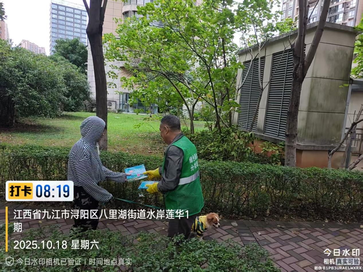 九江新聞網訊 為進一步讓垃圾分類實現常態化、長效化,推動綠色發展,八里湖新區城市生活垃圾分類工作專班組織九江玉誠環衛有限公司在垃圾分類示范小區開展“垃圾分類進家門,綠色發展入人心”為主題的垃圾分類入戶宣傳活動,從面對面宣傳到現場指導,從資料解讀到習慣養成,確保居民能輕松掌握、熟練操作,讓分類成為生活好習慣的良好局面。