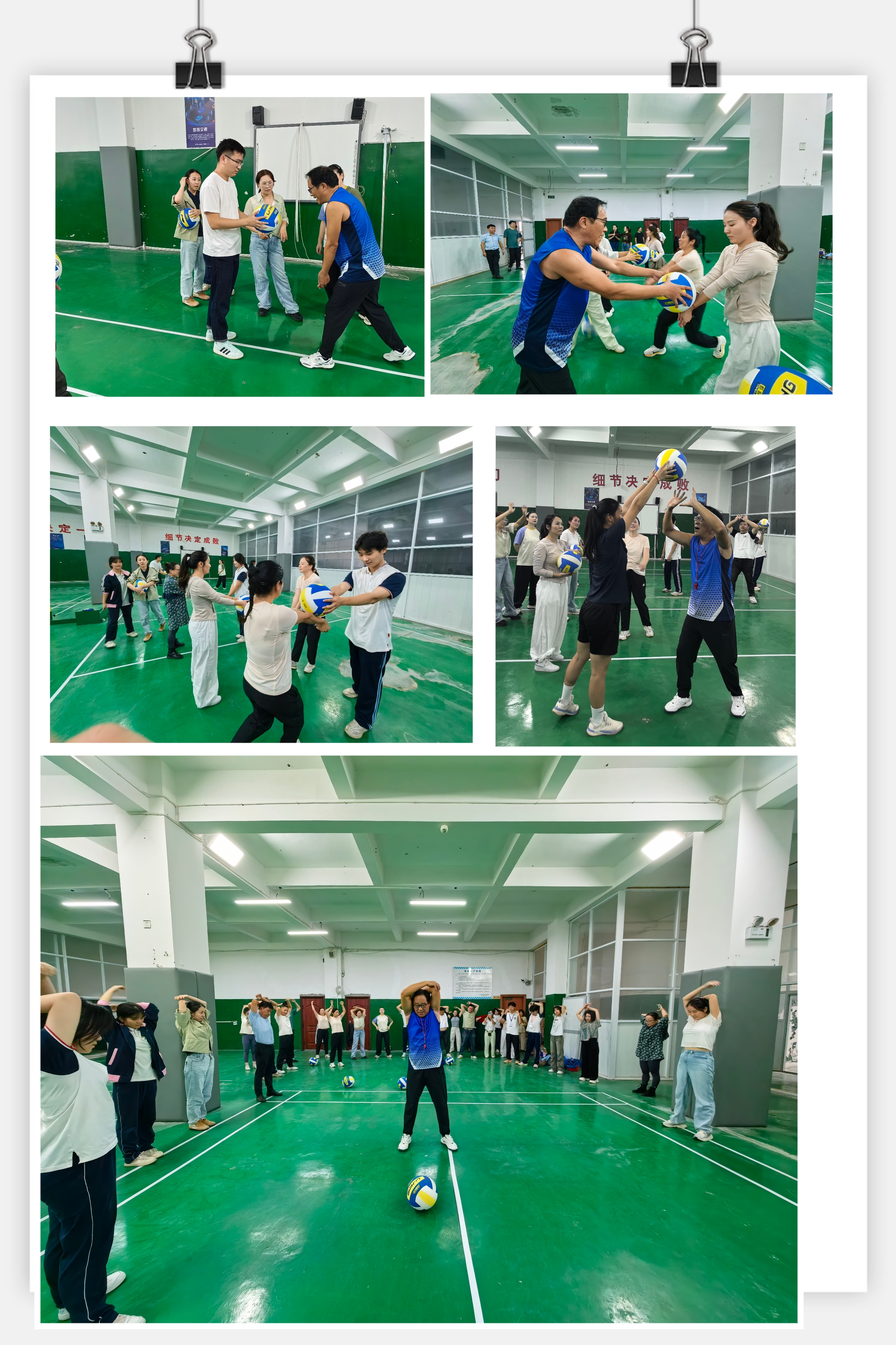 培訓過程中,師生們展現出強烈的求知欲和團隊意識。大家或圍聚在饒老師身邊專注聆聽技術講解,或在場上反復演練發球、傳球、扣球等動作,每一個細節都力求精準到位。從基礎站位到戰術布局,饒老師的專業指導層層深入,讓師生對氣排球運動的理解更為系統。訓練場上氛圍濃厚,彼此切磋、互助共進。