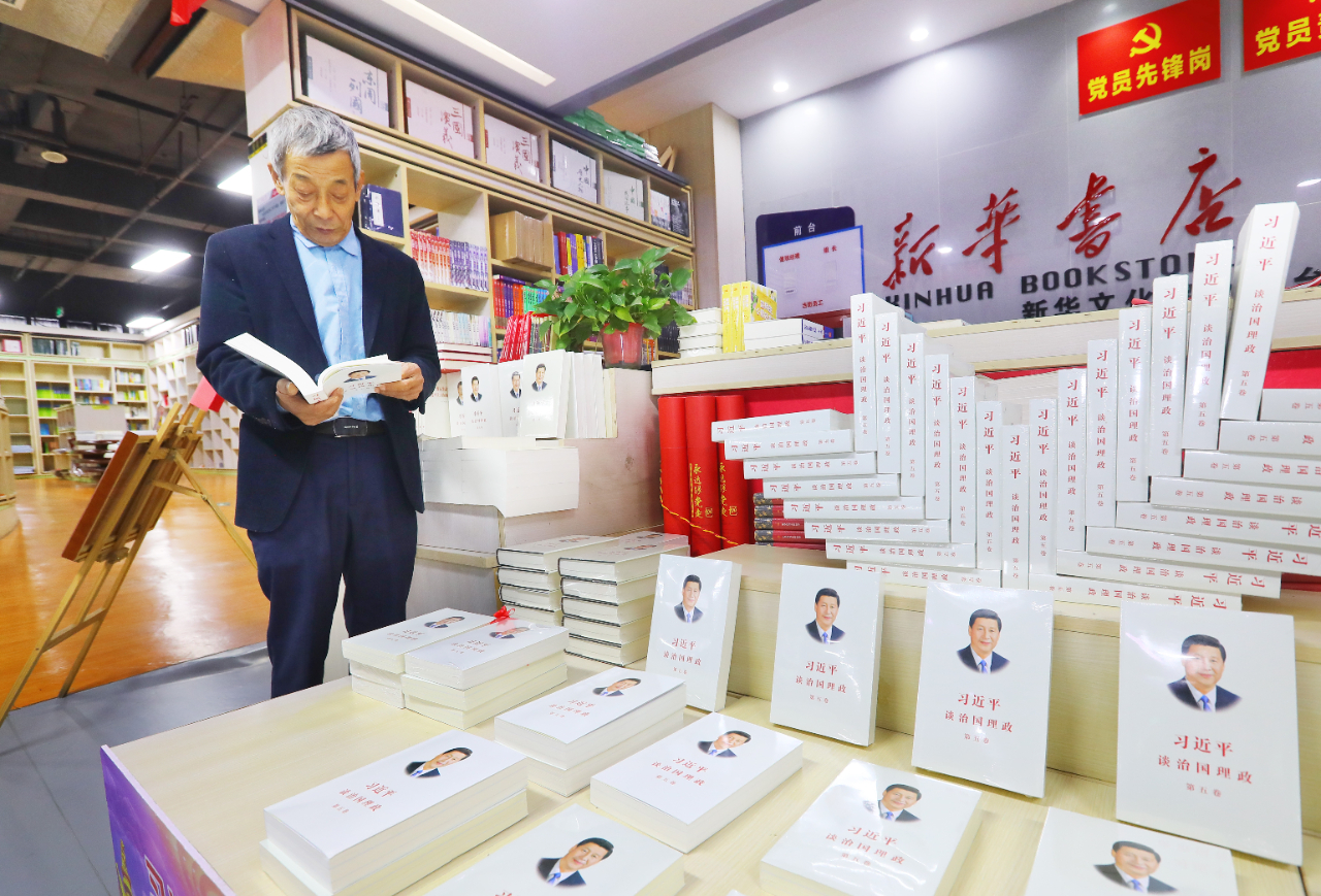 10月22日,市民在新華書(shū)店選購(gòu)閱讀《習(xí)近平談治國(guó)理政》第五卷。由中央宣傳部等單位編輯的《習(xí)近平談治國(guó)理政》第五卷,自7月30日上市以來(lái)持續(xù)熱銷,新華書(shū)店設(shè)立展示專區(qū),書(shū)籍?dāng)[放整齊,吸引眾多讀者翻閱選購(gòu),營(yíng)造出“進(jìn)門即見(jiàn)、駐足即學(xué)”的濃厚氛圍。該書(shū)收入了習(xí)近平總書(shū)記2022年5月27日至2024年12月20日期間的91篇著作,集中展示了馬克思主義中國(guó)化時(shí)代化的最新成果。目前,該書(shū)已在31個(gè)省(自治區(qū)、直轄市)及港澳地區(qū)上架,迅速掀起學(xué)習(xí)熱潮。(九江日?qǐng)?bào)全媒記者 洪顯智 攝)