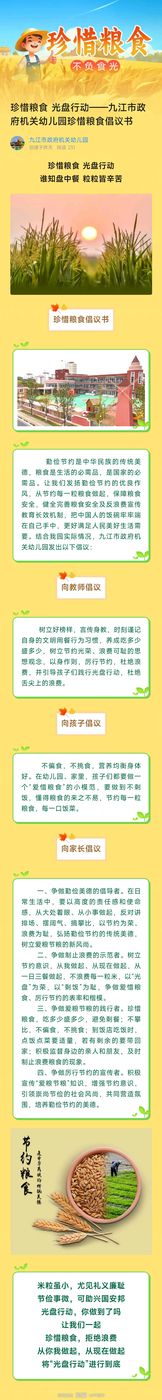 幼兒園精心設計了圖文并茂的珍惜糧食倡議書,通過家長群、公眾號同步推送。家長們積極響應,不僅和孩子共同簽署倡議書,還將內容轉發到朋友圈,帶動身邊人加入節約糧食的行列。