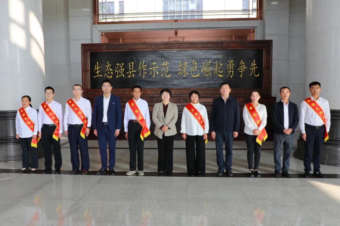 洪碧霞、張宇峰代表縣委、縣政府向榮獲全國表彰的先進集體和個人表示祝賀。