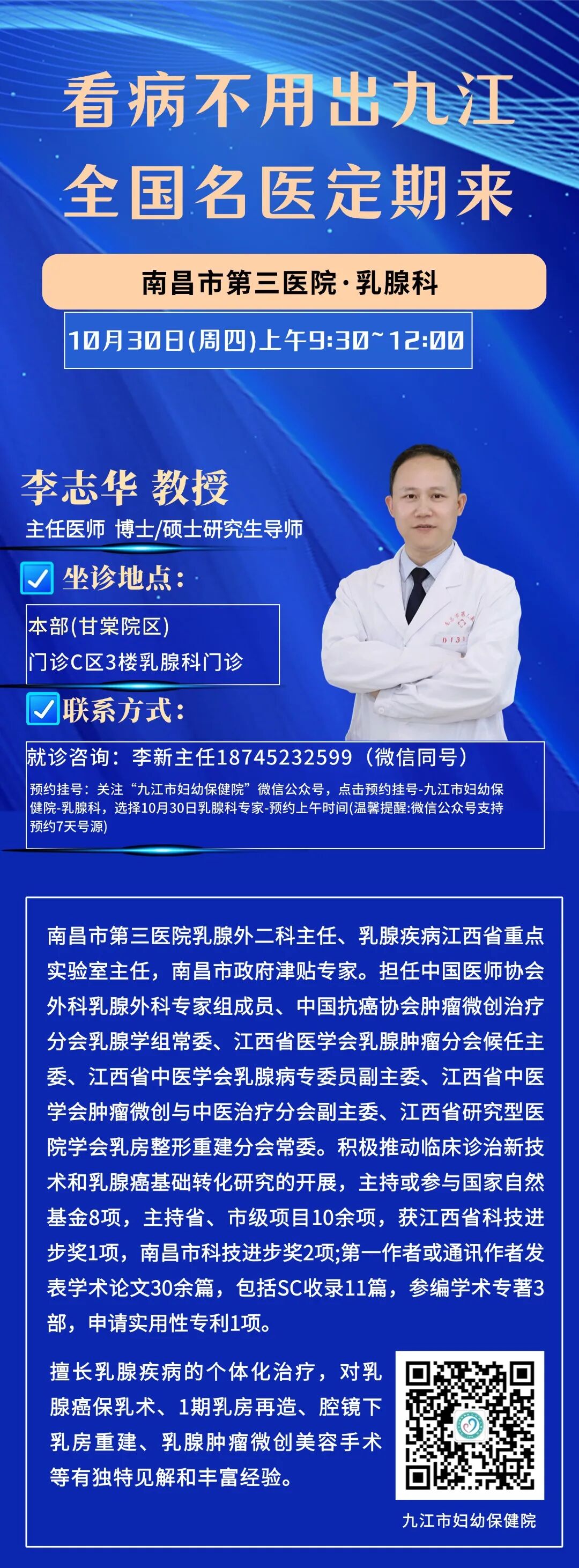 醫訊 | ?10月30日,南昌市第三醫院乳腺外科專家在九江市婦幼保健院坐診、手術