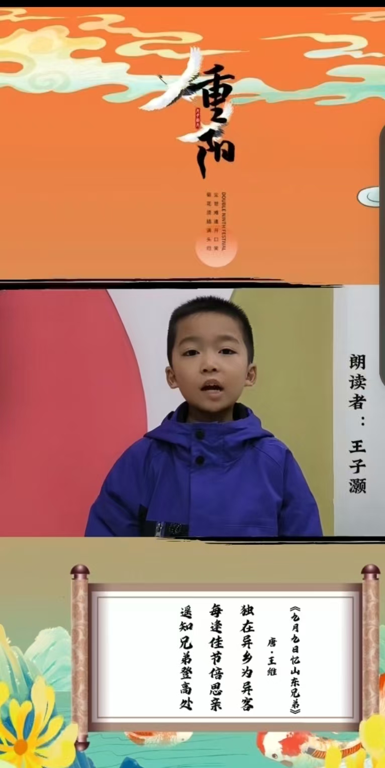 他們以激昂的聲音、飽滿的情感,深情朗誦著一首首關于重陽節的詩歌。這些經典的詩句在同學們的口中煥發出更加動人的光彩。他們用詩歌表達著對長輩的思念與祝福,也讓大家深深感受到傳統文化的獨特魅力。