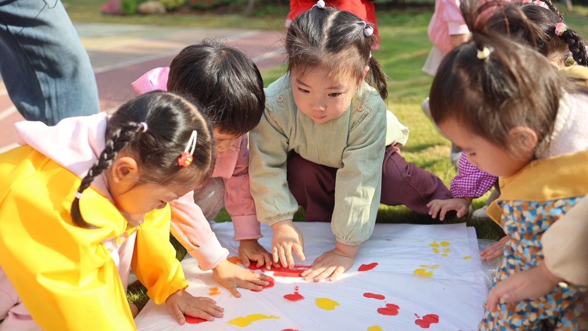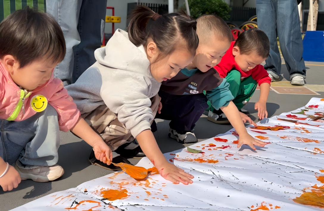 兩園區(qū)小班幼兒齊聚在八里湖園區(qū)的戶外場(chǎng)地,在園區(qū)內(nèi)探索秋日的奧秘,觀察落葉、花草的變化,開(kāi)展豐富的秋日美育活動(dòng),在動(dòng)手實(shí)踐中感受秋天的色彩與形態(tài),在五感體驗(yàn)中擁抱秋日的美好。