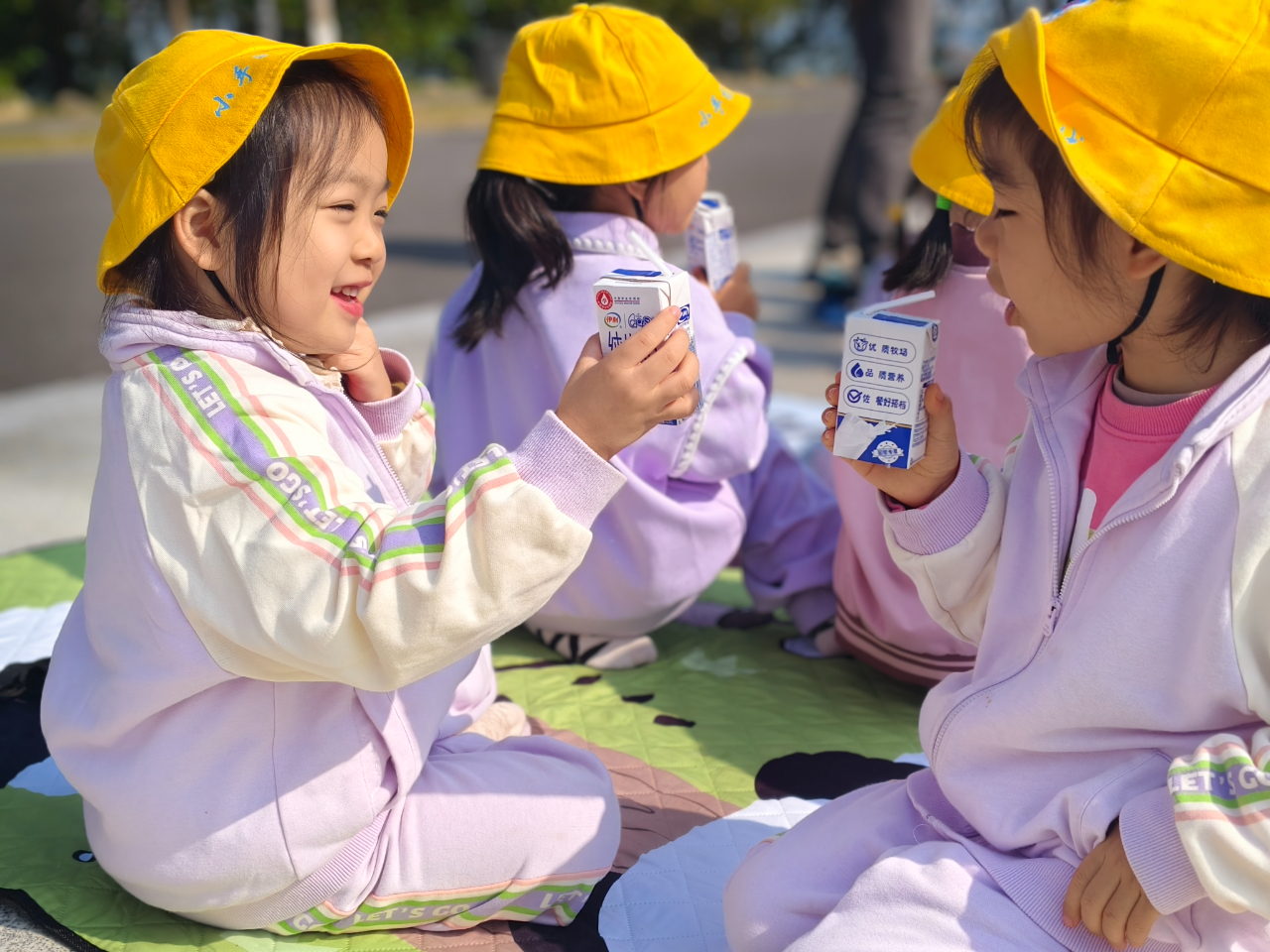野餐活動(dòng)也是秋游必不可少的環(huán)節(jié)。孩子們與教師、家長(zhǎng)志愿者一起在草地上鋪好野餐墊,開(kāi)心地品嘗點(diǎn)心。教師適時(shí)引導(dǎo)幼兒養(yǎng)成良好習(xí)慣,提醒大家不隨便亂扔瓜皮紙屑,保持活動(dòng)場(chǎng)地的整潔衛(wèi)生,孩子們?cè)诜窒砻朗场⑹斋@友誼的同時(shí),樹(shù)立了環(huán)保意識(shí)與文明觀念。