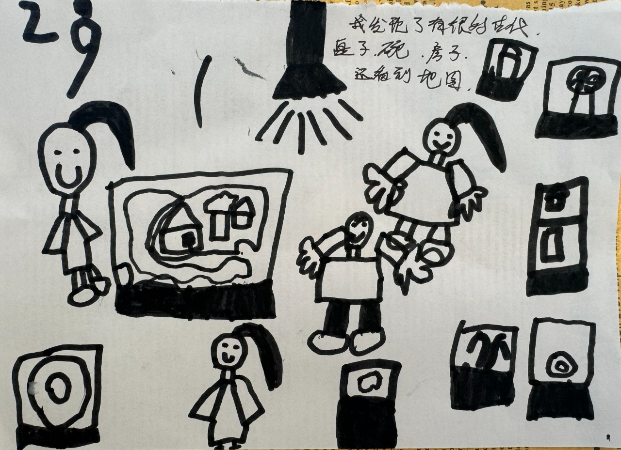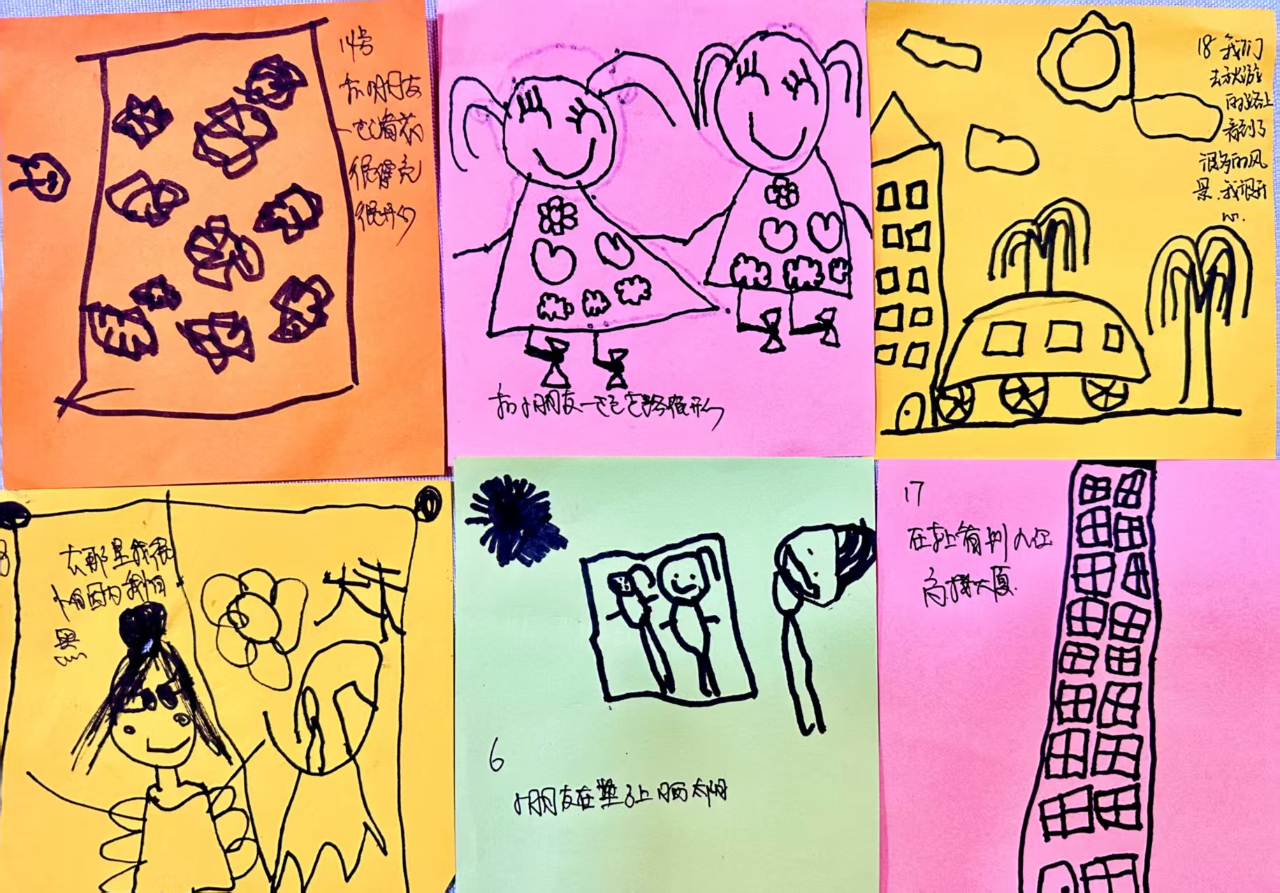 回到幼兒園,孩子們還意猶未盡,拿起畫(huà)筆記錄秋游的有趣故事。教師傾聽(tīng)著孩子們的分享:“今天我看到了很多古代的東西!”“我在秋游路上看到了很多美麗的風(fēng)景,我很開(kāi)心!”稚嫩的話語(yǔ)里滿是探索的驚喜與發(fā)現(xiàn)的驕傲。