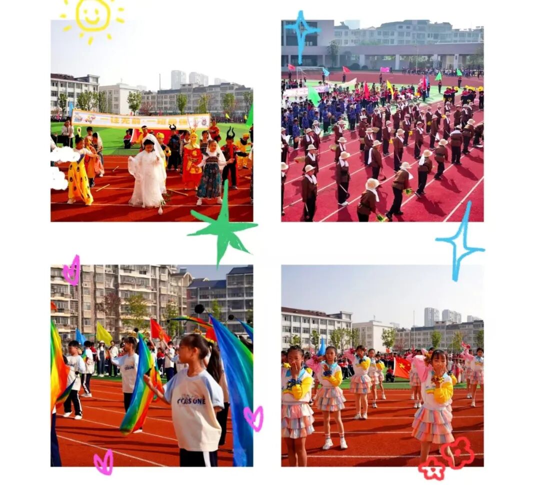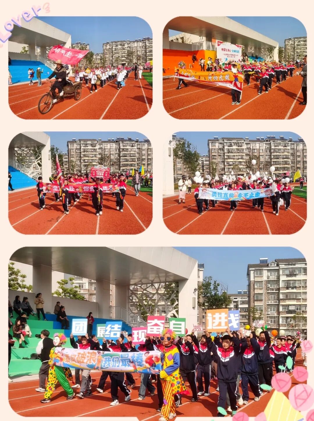 各班級方陣輪番登場,是賽場上最奪目的星光。他們身著特色班服,手持精心設計的道具,用整齊的隊列和響亮的口號喊出屬于童年的活力宣言,踐行著“友誼第一,比賽第二”的精神。每一個方陣的亮相,都贏得了師生們的陣陣歡呼,操場上的氛圍被一次次推向高潮。
