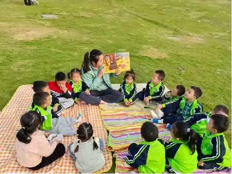 秋日的戶外,清風(fēng)送爽。老師與孩子們席地而坐,翻開繪本,在字里行間捕捉秋天的私語,清脆笑聲隨桂香飄散。