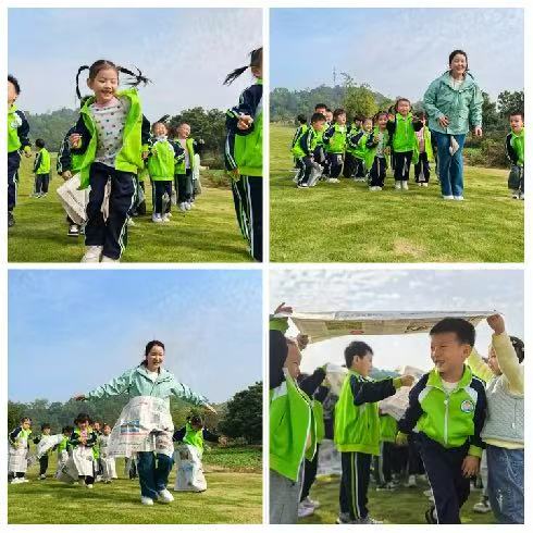 在這秋高氣爽下,小朋友們蹦蹦跳跳、嘰嘰喳喳,玩得滿臉通紅仍不愿停下,盡情享受游戲。