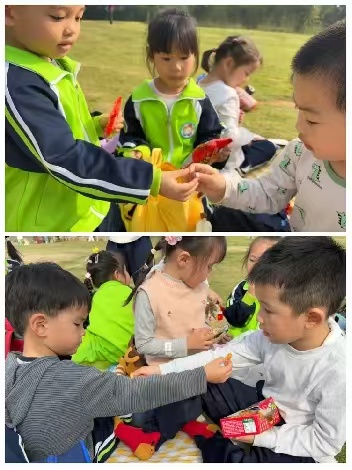 歡樂的游戲落下帷幕,孩子們將帶來的零食、水果一一擺開,迫不及待地和好朋友分享這份甜蜜。大家三三兩兩湊坐成團(tuán),任秋日的清風(fēng)輕輕拂過發(fā)梢,美食的香氣在鼻尖縈繞,你一言我一語聊著趣事,分享的快樂在歡聲笑語中越釀越濃。
