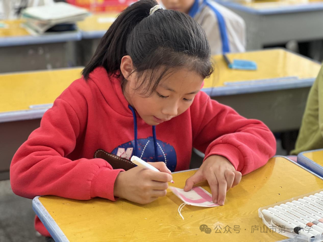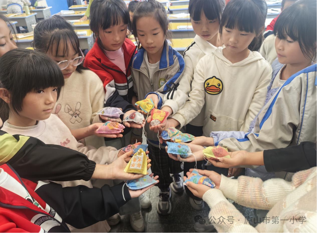 在勞動(dòng)與美術(shù)融合的課堂里,隊(duì)員們則化身“巧手工匠”,精心制作茱萸香囊。一針一線,一筆一畫,再配上真摯的祝福語(yǔ),小小的作品承載了隊(duì)員們滿滿的愛(ài)與感恩。