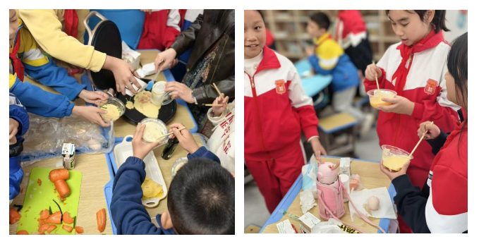 “自己做的雞蛋餅也太香了吧!”“回家我要給家人露一手!”從備料到制作再到品嘗,同學們在勞動中收獲了“付出即美味”的幸福,也對“食物的來之不易”有了真切體悟。