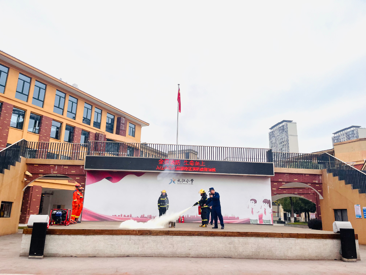 九江新聞網(wǎng)訊(賀韜)今年的11月9日是第34個(gè)全國(guó)消防日。為緊扣“全民消防,生命至上 —— 安全用火用電” 這一消防主題,11月4日,九江市八里湖新區(qū)消防救援大隊(duì)走進(jìn)九江小學(xué)八里湖校區(qū),組織全體師生進(jìn)行了一場(chǎng)特別的消防演練。