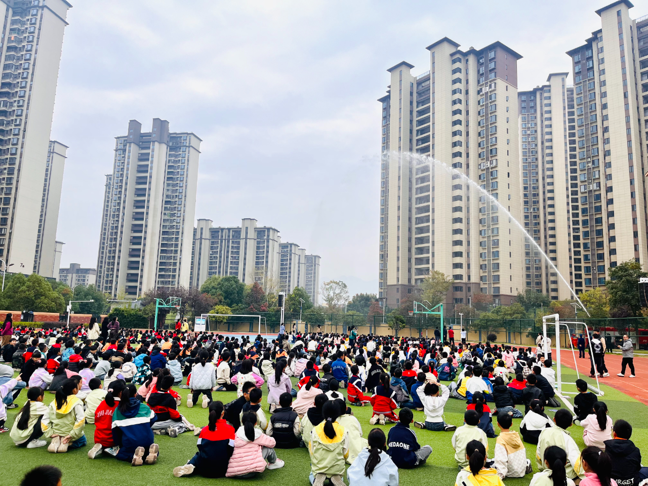 緊接著,消防宣傳員結(jié)合近期發(fā)生的案例,為全校師生分析了校園常見(jiàn)安全事故的特點(diǎn)以及可能存在的安全隱患,悉心講解了安全疏散知識(shí)和自救技能。在實(shí)操演示環(huán)節(jié),消防員現(xiàn)場(chǎng)講解滅火器、消防水帶等器材的使用原理與操作步驟,親手示范干粉滅火流程,并啟動(dòng)車(chē)載遙控水炮進(jìn)行出水展示,強(qiáng)勁的水流噴射而出,讓學(xué)生們近距離感受到了消防裝備的震撼威力。