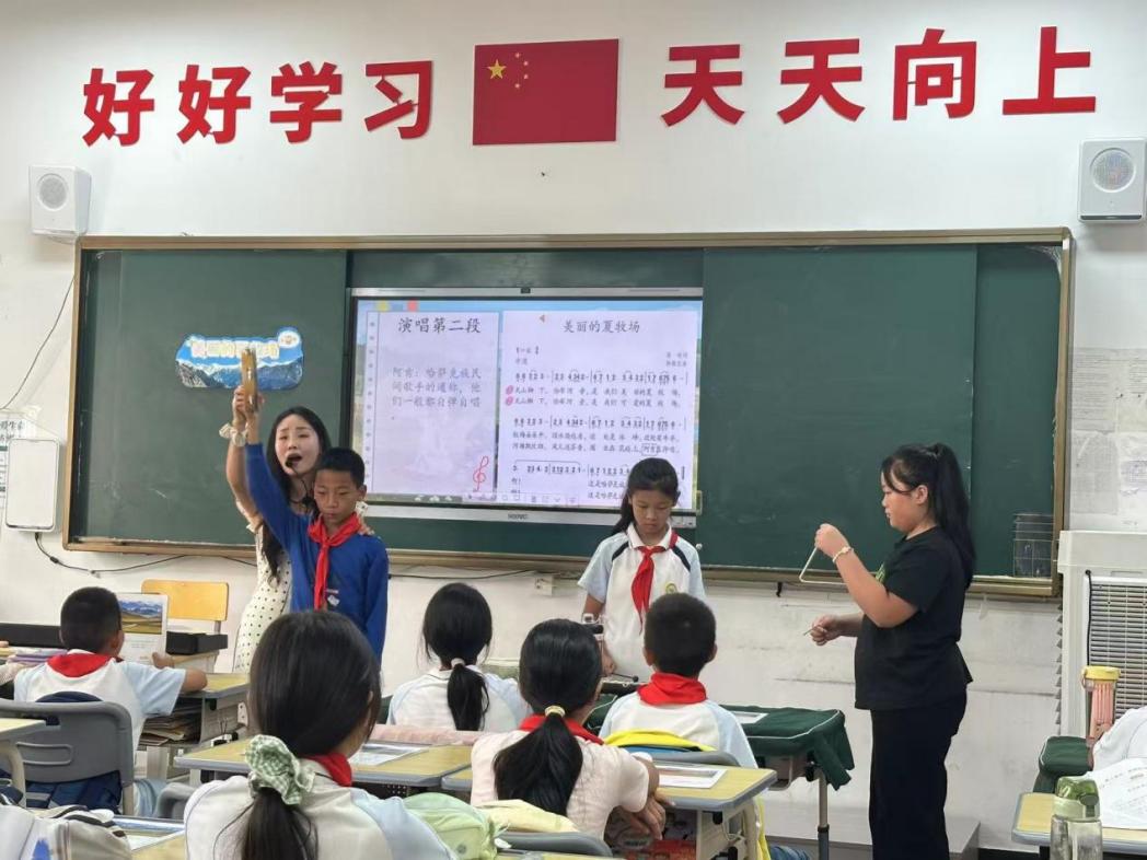 “藍(lán)藍(lán)的天空白云飄,遼闊的牧場(chǎng)牛羊跑……”悠揚(yáng)的歌聲回蕩在小學(xué)音樂教室,一堂充滿哈薩克族風(fēng)情的《美麗的夏牧場(chǎng)》教學(xué)課溫馨開講。課堂上田蕾老師以旋律為紐帶,通過樂器演奏、合唱排練等互動(dòng)形式,讓孩子們?cè)谛芍绣忮瞬菰L(fēng)光,感受民族音樂的獨(dú)特魅力。