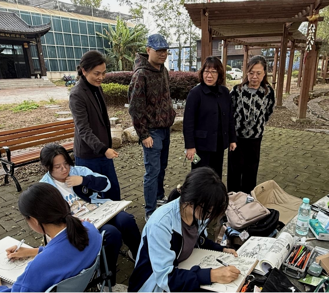 九江新聞網訊(王進)10月31日至11月2日,九江市第六中學高二美術班的同學們走出熟悉的課堂,背起畫板,前往柴桑區凌華田園綜合體寫生基地開展為期三天的戶外寫生活動。寫生期間,黨總支書記邵素英、校長黃曉葵赴現場看望學生,同師生親切交流。