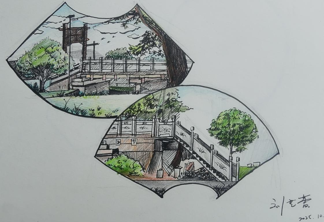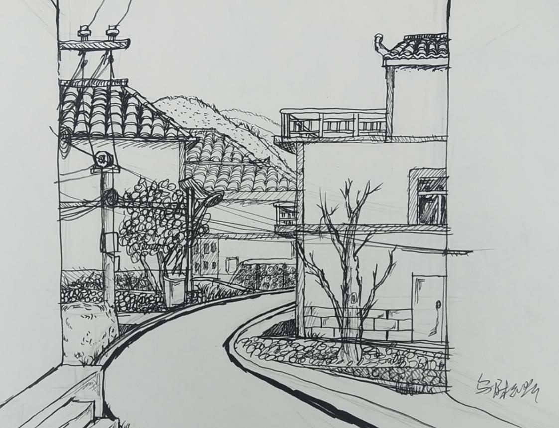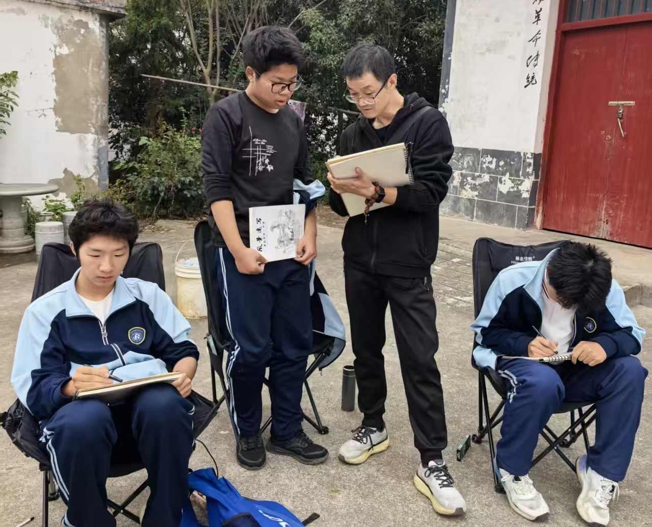 在充滿詩意的村寨中,同學們以天空為幕布,以大地為課桌。他們執筆凝神,細心捕捉著秋日的輪廓。老師們穿梭其間,耐心指導,時而輕聲提出建議,時而親自示范,將技巧與心得毫無保留地傳授給學生。畫筆沙沙作響,線條流暢揮灑,每一筆都是與自然的對話,每一幅都是內心情感的抒發。從最初的些許生澀到后來的揮灑自如,成長的痕跡清晰可見。