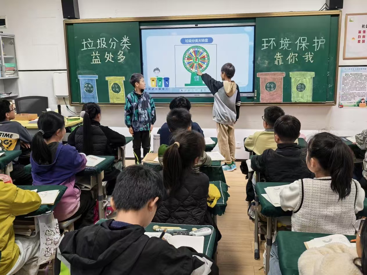 九江新聞網(wǎng)訊(劉子林)11月4日,九江小學(xué)的教室里,掌聲與歡笑聲此起彼伏,一場別開生面的 “環(huán)境關(guān)系你我他,垃圾分類靠大家” 主題班會(huì)正在熱烈進(jìn)行。這場班會(huì)全程由高年級(jí)學(xué)生自主策劃、主持,盡顯少年們的風(fēng)采。