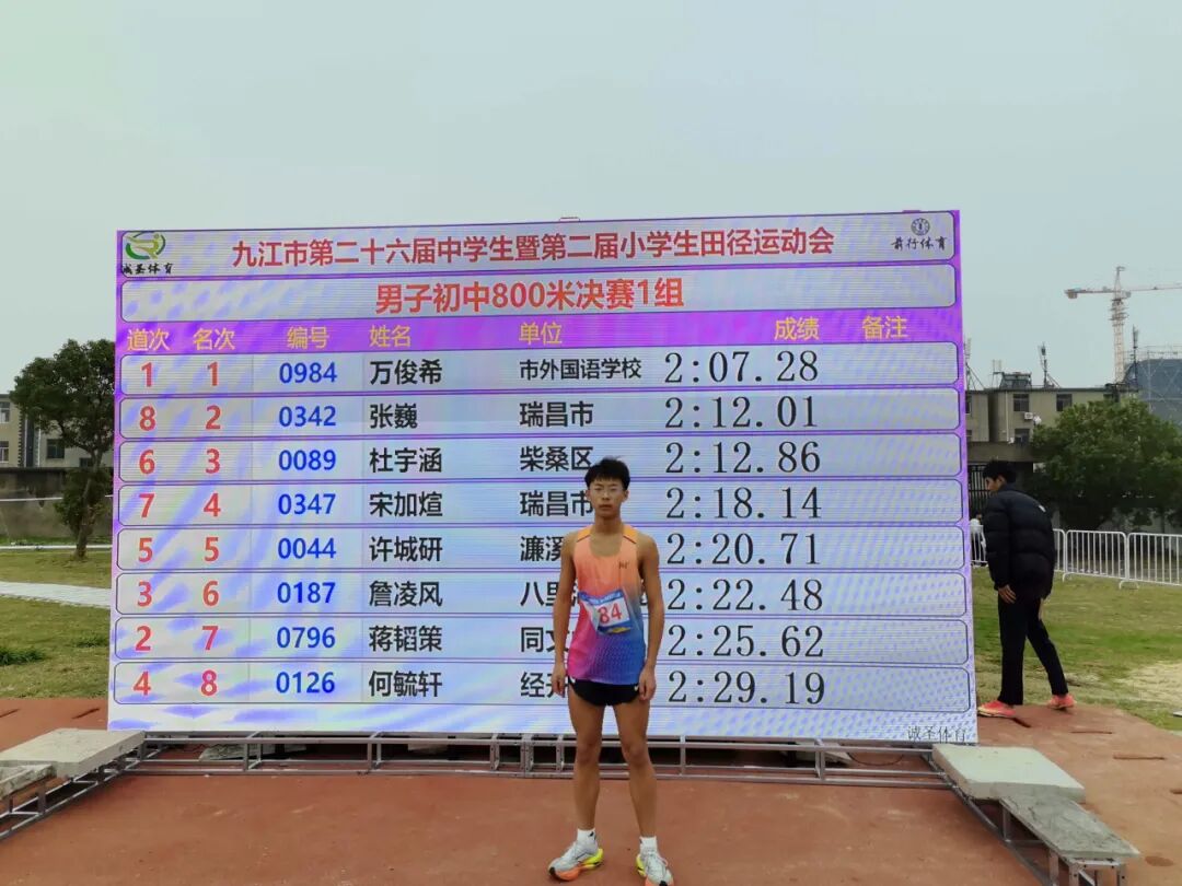 九江外國語學校運動健兒在九江市第26屆中學生暨第二屆小學生田徑運動會中斬獲市直季軍、地區第八佳績