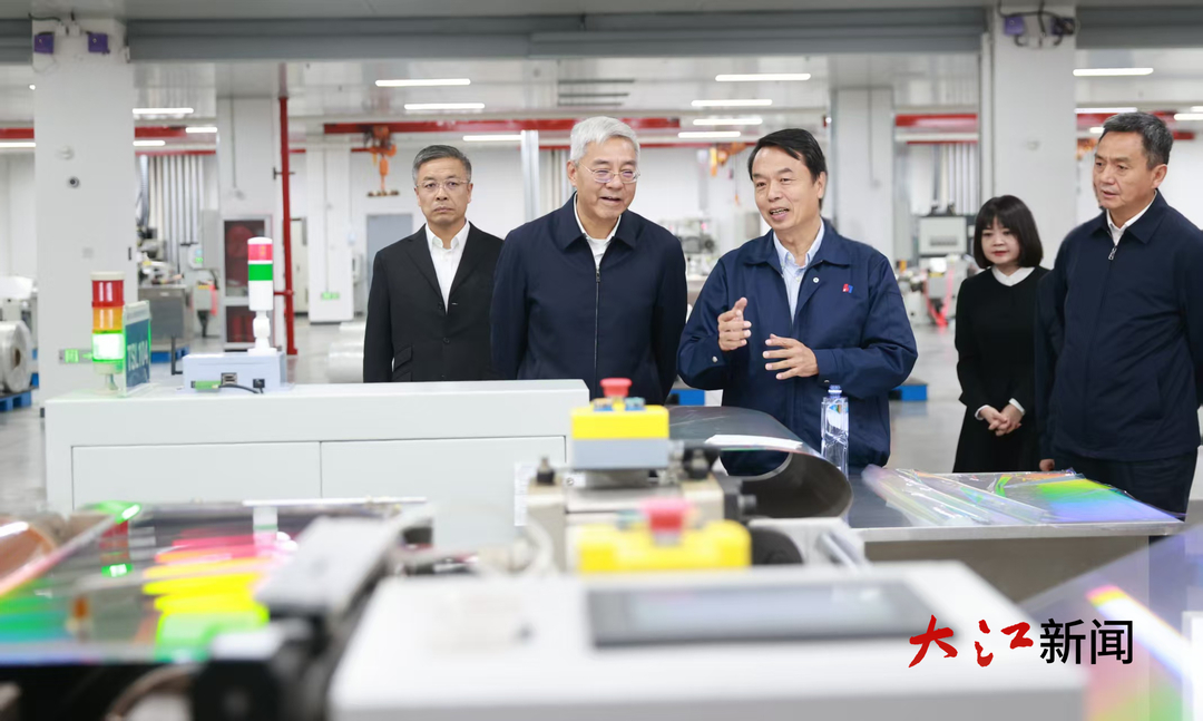 南昌光群雷射科技公司是全球鐳射全息防偽產品整合最完整的材料供應商。尹弘察看企業展廳和生產車間,與企業負責人深入交流。企業家對營商環境給予肯定,尹弘指出,要積極融入和服務全國統一大市場建設,持續加強招商引資、優化營商環境,設身處地為企業著想,創新服務舉措,不斷提升企業滿意度。尹弘希望企業堅定在江西發展信心,持續擴大投資,深耕細分領域,推出更多高附加值產品,助推產業高質量發展。