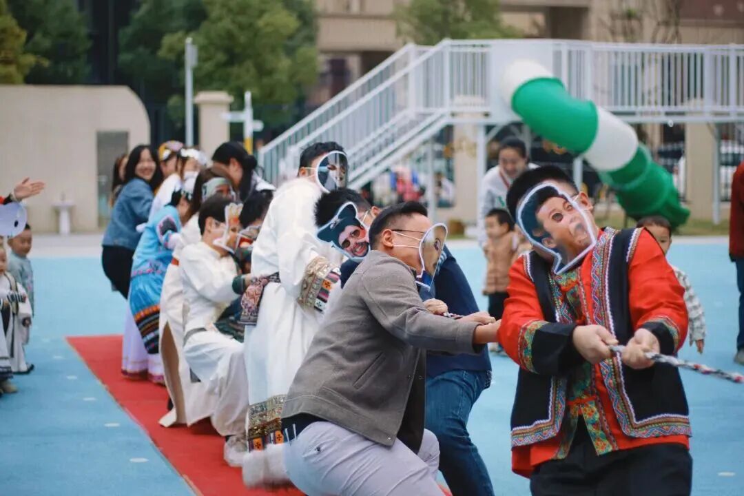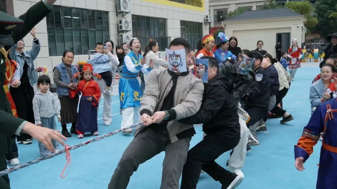 家長(zhǎng)們戴上搞怪面具奮力拔河,憨態(tài)可掬引得全場(chǎng)爆笑。活動(dòng)在歡聲笑語中拉近家園距離,展現(xiàn)了親子協(xié)作的歡樂與溫情。