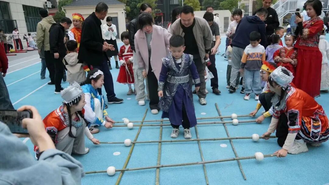 竹竿噠噠響,親子跳起來!跟著節(jié)奏踏黎家舞步,腳踩快樂,跳出滿滿民族味。